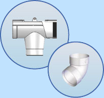 Уплотнители из EPDM"каучука герметизируют соединения элементов системы, не препятствуя линейному расширению желобов. Муфты и отводы для труб сконструированы так, что раструб с двойной стенкой прикрывает стык, в котором необходимо оставлять зазор 1 см для линейного расширения трубы. Благодаря этому собранная система имеет эстетичный внешний вид, не теряя в функциональности.